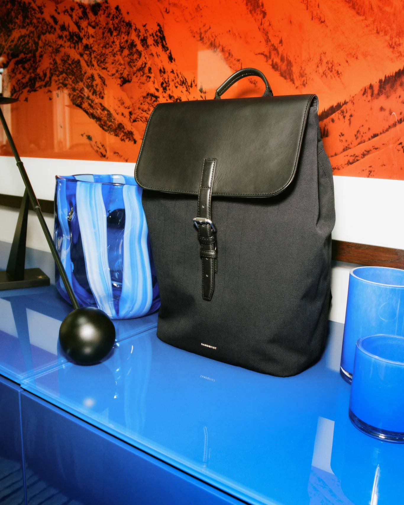 EVERYDAY ORIGINALS Lid Backpack M - Black with Black leather