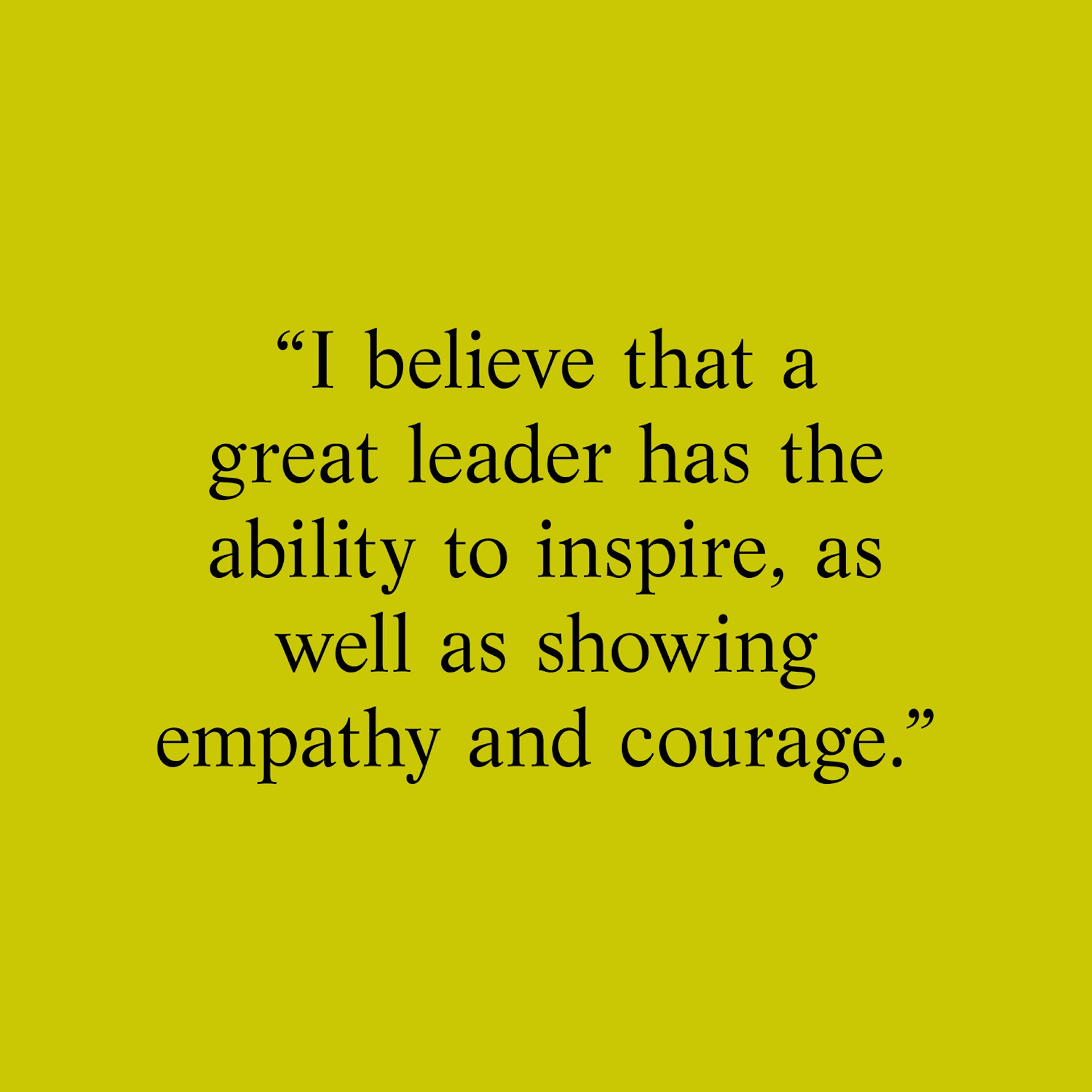I believe that a great leader has the ability to inspire, as well as showing empathy and courage. Courage to try new things and rely on the team, all while making wise decisions and prioritizing what’s most important.