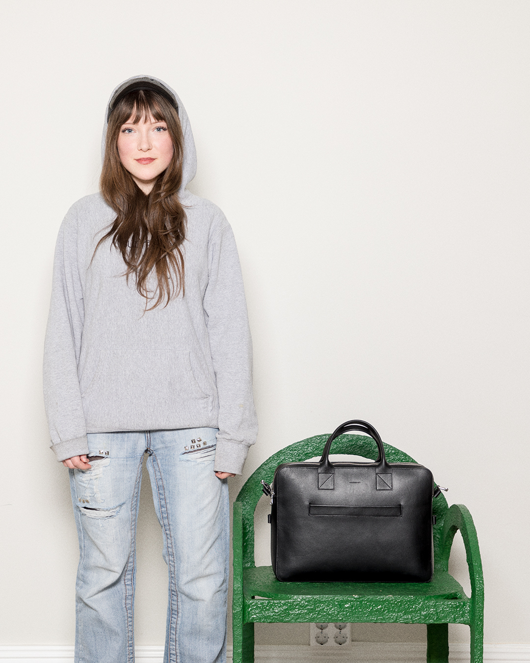 Bär den i de stadiga läderhandtagen för ett klassiskt intryck, eller använd den justerbara, avtagbara axelremmen när du vill ha händerna fria på väg till jobbet.