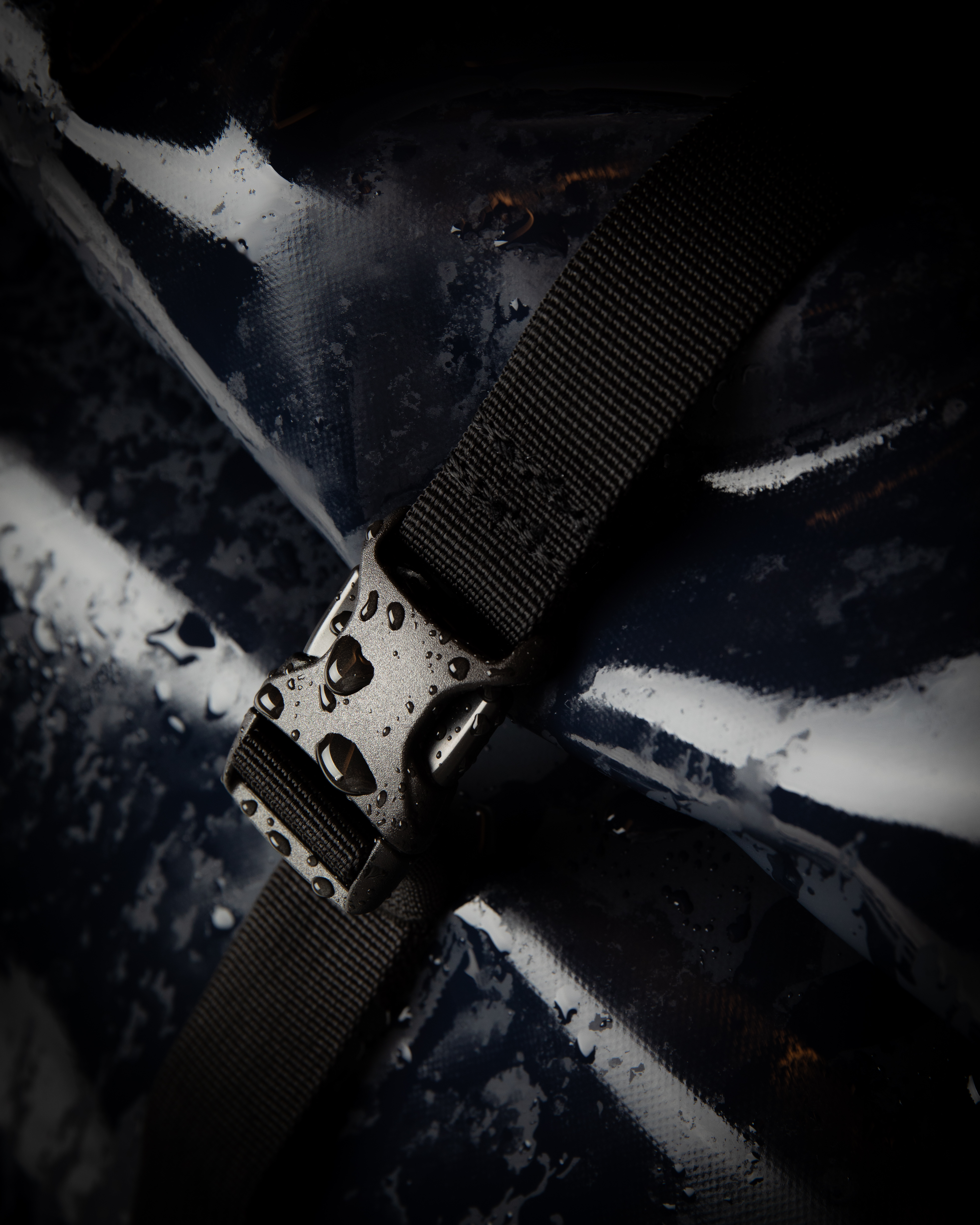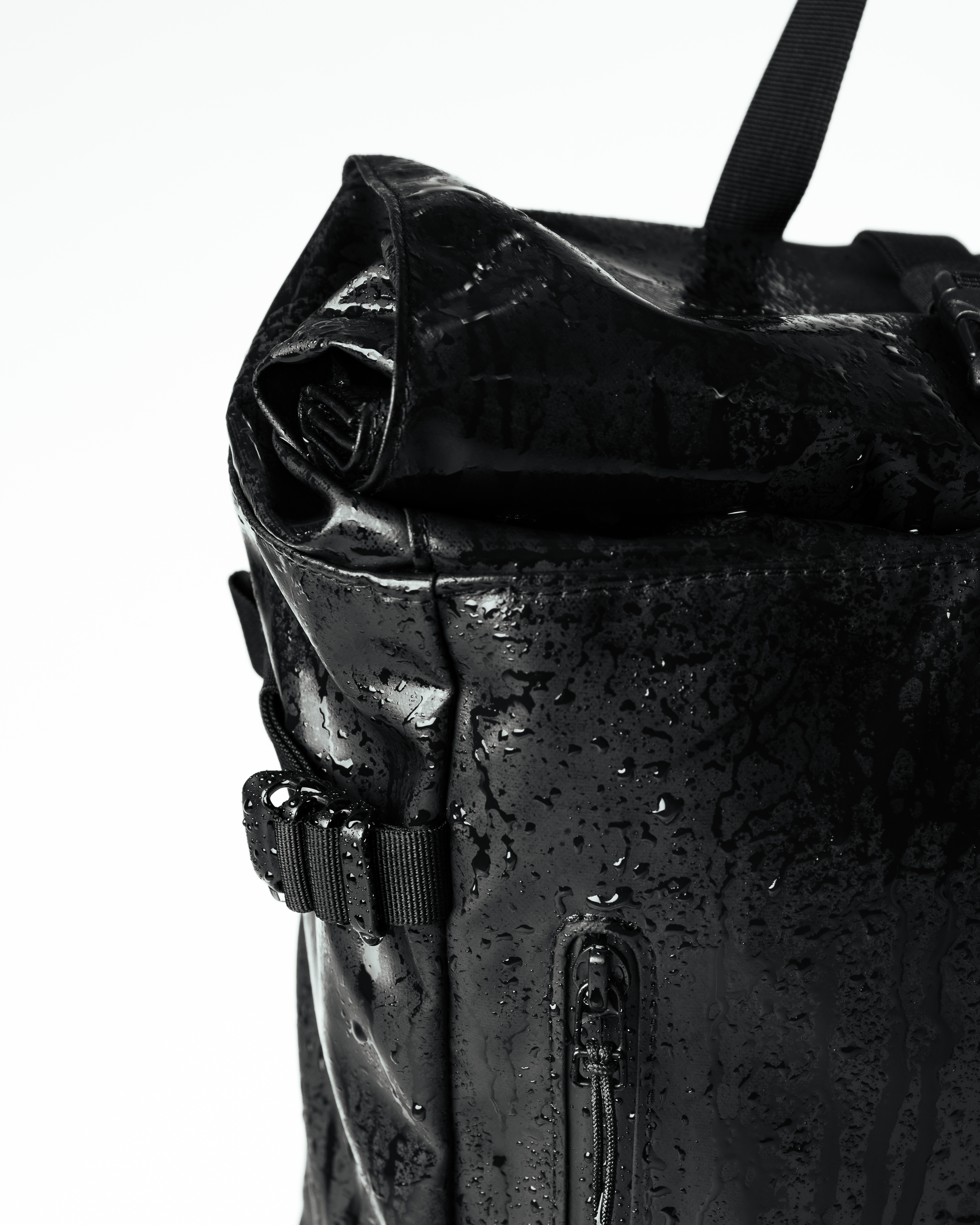 Vattentäta dragkedjor och material i matt finish. Designad för att hålla dina tillhörigheter torra i alla väder.
