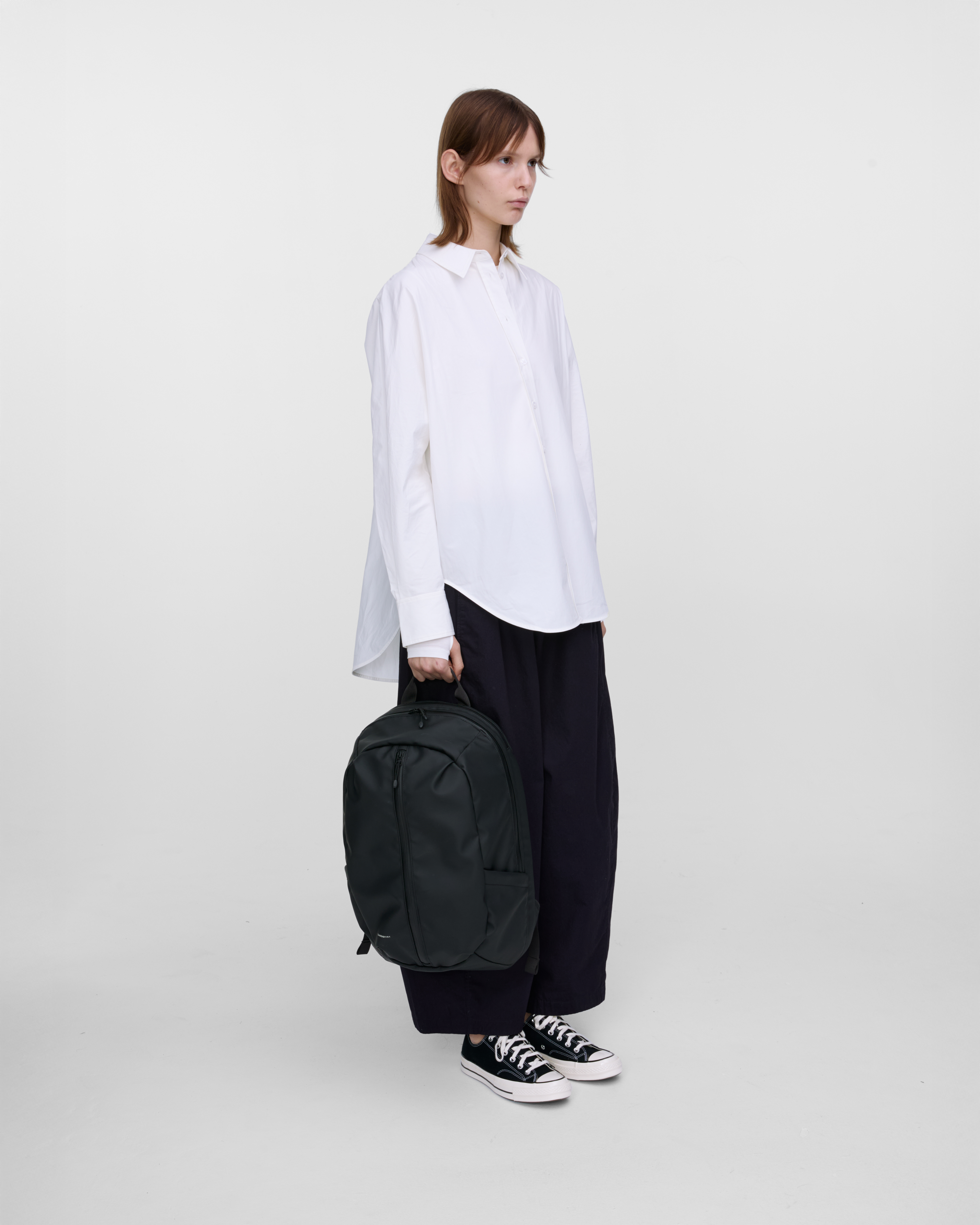 Stay compact, light, and rainproof. This backpack features a sleek turtle-shell shape. Part of our waterproof STREAM series, it keeps your essentials dry and protected from the rain, while its smooth surface is easy to wipe clean after use.